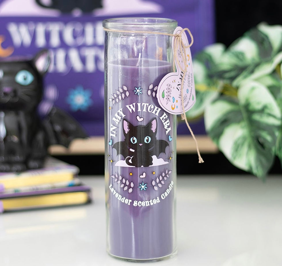 CUTE AND CREEPY CAT PRINT LAVENDER TUBE CANDLE